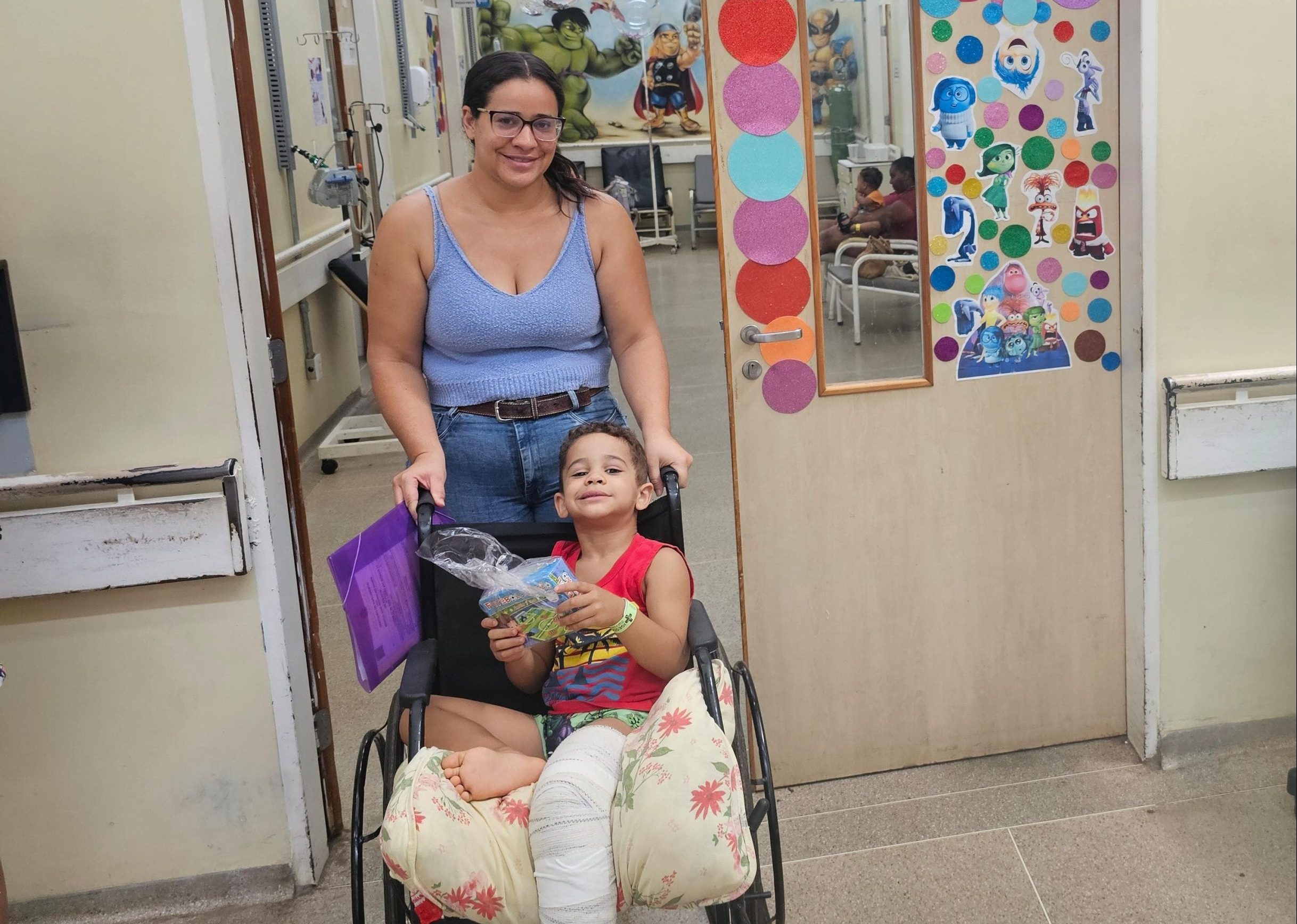 A mãe dele, Poliana Rodrigues, de 31 anos, aprovou a atitude da equipe. “É muito bom porque a criança já vem para o hospital tensa, com medo. Recebendo o brinquedo, consegue se distrair um pouco e ficar mais tranquila para a medicação e os curativos”, avalia.