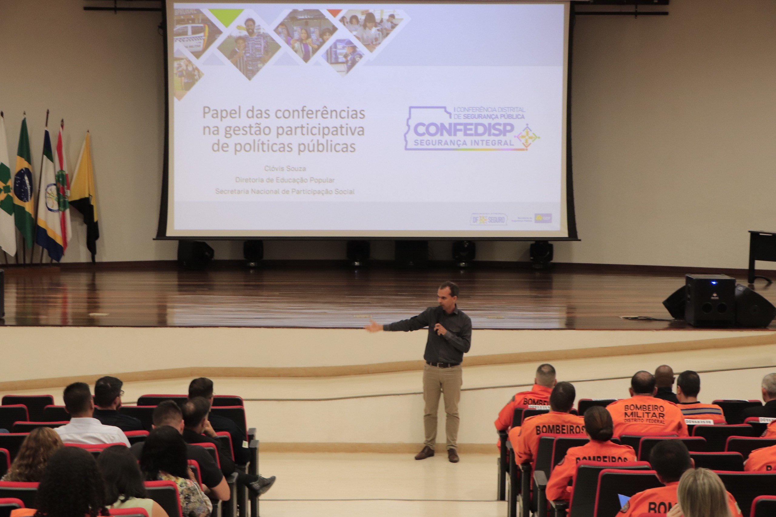 Nesta segunda-feira (14), cerca de 150 servidores das forças de segurança – polícias Civil (PCDF), e Militar do DF (PMDF), Corpo de Bombeiros (CBMDF) e Departamento de Trânsito (Detran-DF), servidores da SSP-DF e da Secretaria de Administração Penitenciária (Seape) participaram da preparação para a Confedisp. Os servidores serão os pontos focais das instituições durante todo o processo de preparo e realização da I Confedisp. Para isso, passaram por uma capacitação, que inclui metodologia de ensino e discussão de temas afetos à segurança integral no DF.